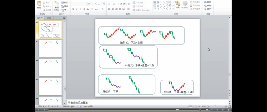- 反转式:上涨+盘整+下跌;下跌+盘整+上涨。