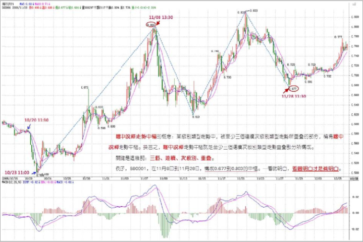 例子,580991,在11月8日到11月28日,构成0.677到0.803的中枢。一看就明白,看图明白才是真明白。