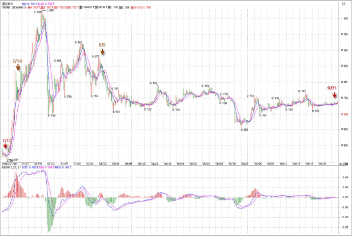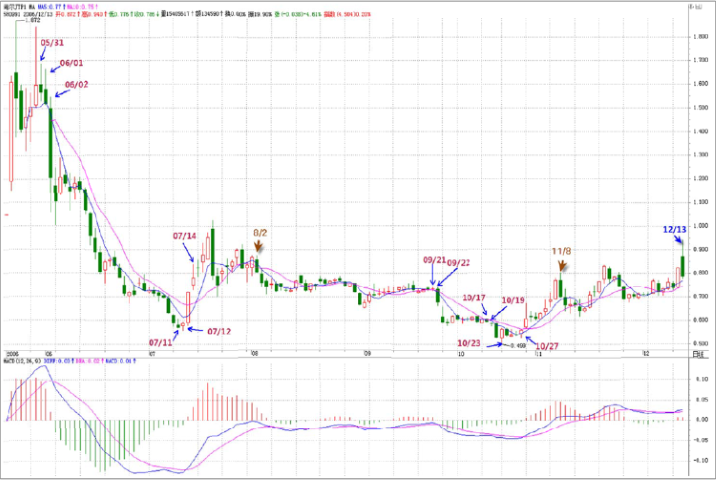 2006-12-18 15:04:25:您说“而580991从2006年10月23日到12月13日,只构成日线上的盘整走势(为什么?因为在日线上明确地看到一个缠中说禅走势中枢)”。这句话中提到的那个缠中说禅走势中枢是指10/23~11/8,还是11/14~11/21,如果看30分钟图,应该是指前者对吗?
