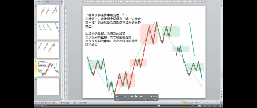 “缠中说禅走势中枢定理一”: 在趋势中(注解🐷:趋势中的中枢新生),连接两个同级别“缠中说禅走势中枢”的必然是次级别(注解:或次级别)以下级别的走势类型。