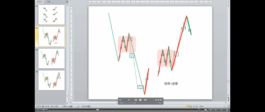 缠中说禅盘整: 在任何级别的任何走势中,某完成的走势类型只包含一个缠中说禅走势中枢,就称为该级别的缠中说禅盘整。
