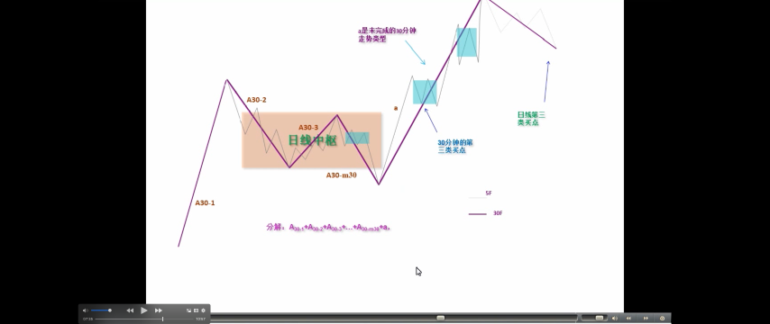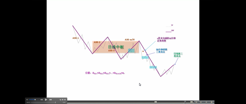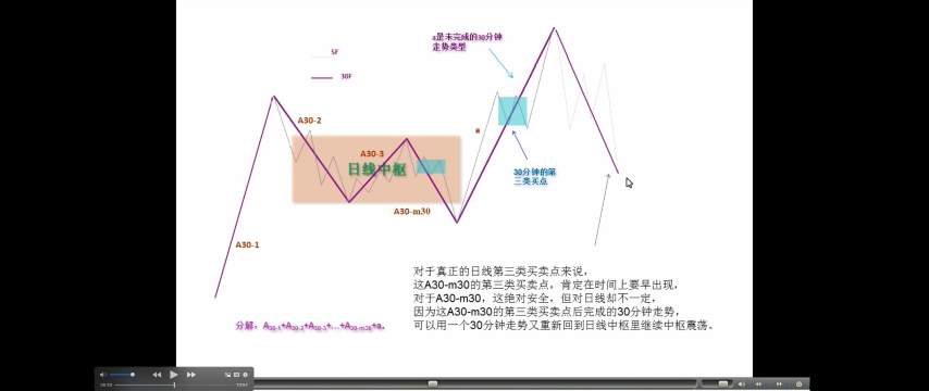 最后如果真出现日线的第三类买卖点,往往就在 30 分钟的第二个中枢附近就形成