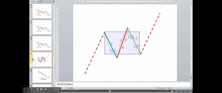 上堂课提到走势类型连接运算的结合性,也就是走势类型的连接符合结合律,即 A+B+C=(A+B)+C=A+(B+C),A、B、C 的走势类型级别可以不同。因此,站在多义性的角度,根据该结合律,就不难知道,任何一段走势,都可以有很多不同的释义。必须注意,多义性不是含糊性,一个含糊的理论,其分类、概念等呈现的含糊性,只是证明该理论基础的含糊。而多义性,是站在一个严格、精确的理论基础上,用同一理论的不同视角对同一现象进行分析。
