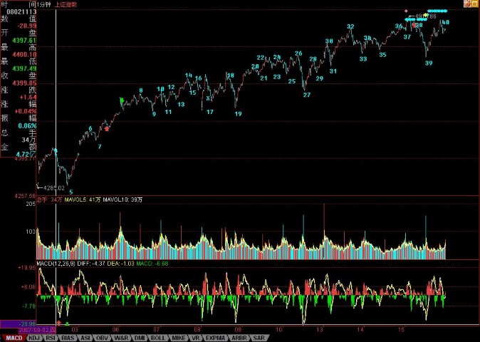 例如,到今天,走势一种最明显的划分已经自动走出来,就是 8-17 构成 5 分钟中枢,该中枢是 4300 点那个 5 分钟中枢上来后的一个新的 5 分钟中枢,这个中枢,在刚形成时,我们已经指出,而且任何学过本 ID 理论的,都可以当下指出。一般来说,形成这个 5 分钟中枢后,在理论上只有三种走势: