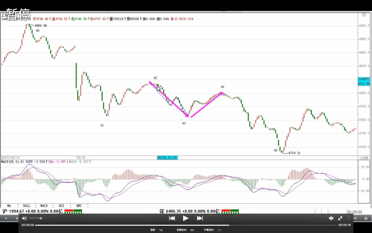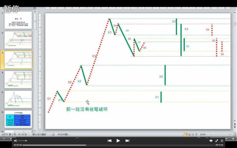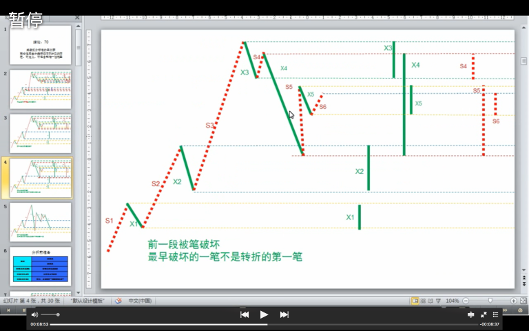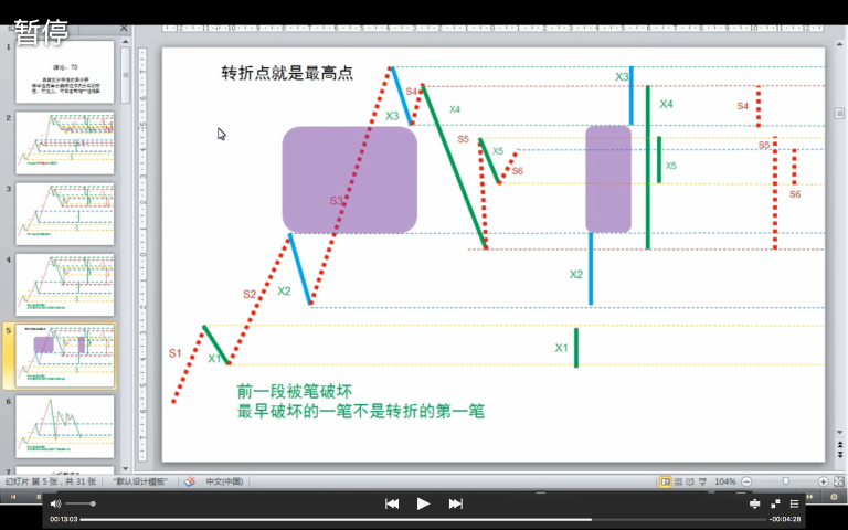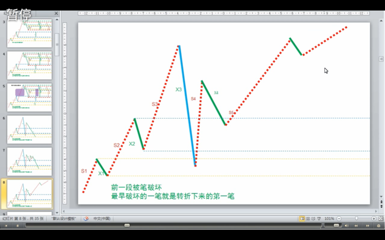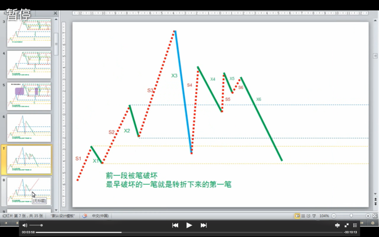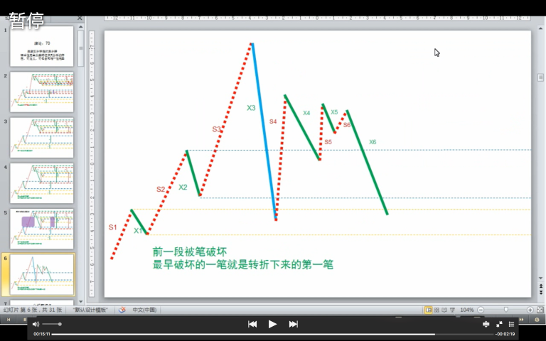 从上面的分析就可以知道,从转折点开始,如果第一笔就破坏了前线段,进而该笔延伸出三笔来,其中第三笔破第一笔的结束位置,那么,新的线段一定形成,前线段一定结束。