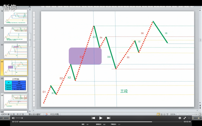 这个道理其实很明白,例如 前一段是向上的,那么特征序列元素是向下的,而在顶分型的右侧元素,如果最终真满足破坏前线段的要求,那么后线段的方向就是向下的,其特征序列就是向上的,而顶分型的右侧元素是向下的,显然不属于后一段的特征元素,而该顶分型的右侧元素又属于后一段,那么显然更不是前一段的特征元素。所以,对于顶分型的右侧特征元素,只是一般判断方面的一种方便的预设,就如同几何里面,添加辅助线去证明问题一样,辅助线不属于图形本身,就如同顶分型的右侧特征元素其实不一定属于任何的特征元素,但对研究有帮助,当然是要大力去用的,如此而已。