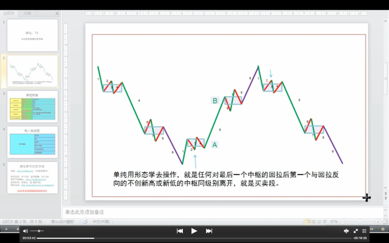 其实,光用形态学,就足以形成一套有效的操作体系。只是在形态学中,由于没有背驰的概念,所以第一买卖点是抓不住了,但第二买卖点是肯定没问题的。单纯用形态学去操作,就是任何对最后一个中枢的回拉后第一个与回拉反向的不创新高或新低的中枢同级别离开,就是买卖段。(粗壮的种子:光用形态学的操作方法 )